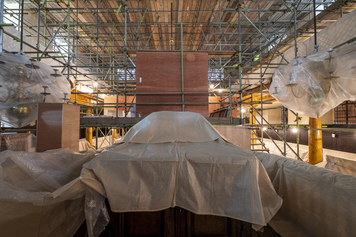 In the last two years I have become very familiar with the interior of the building but even so, I was not prepared for how a specialist restoration takes steps to protect the exterior and interior of the building, especially where there is little room on site for any facilities.