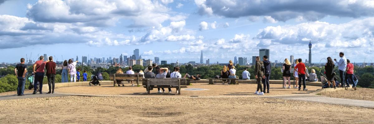 The summit of Primrose Hill provides commanding and interrupted views of the London Skyline.