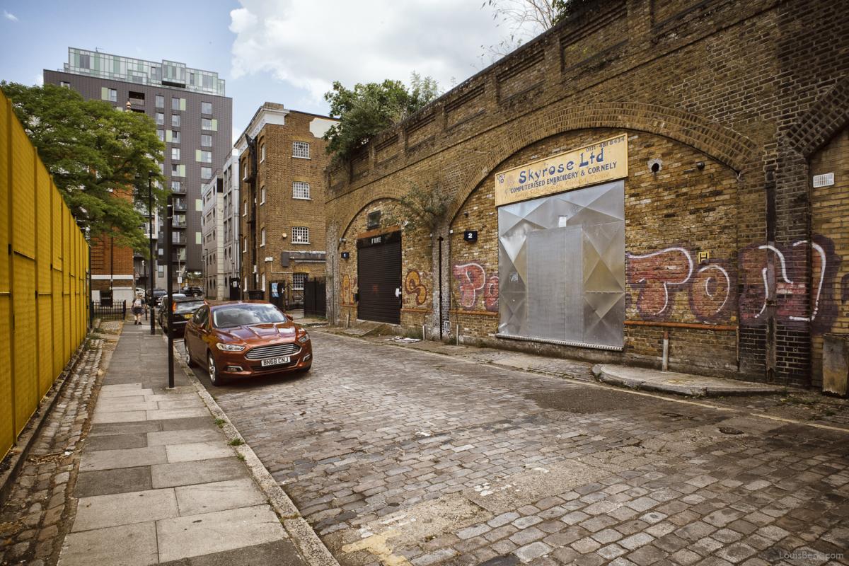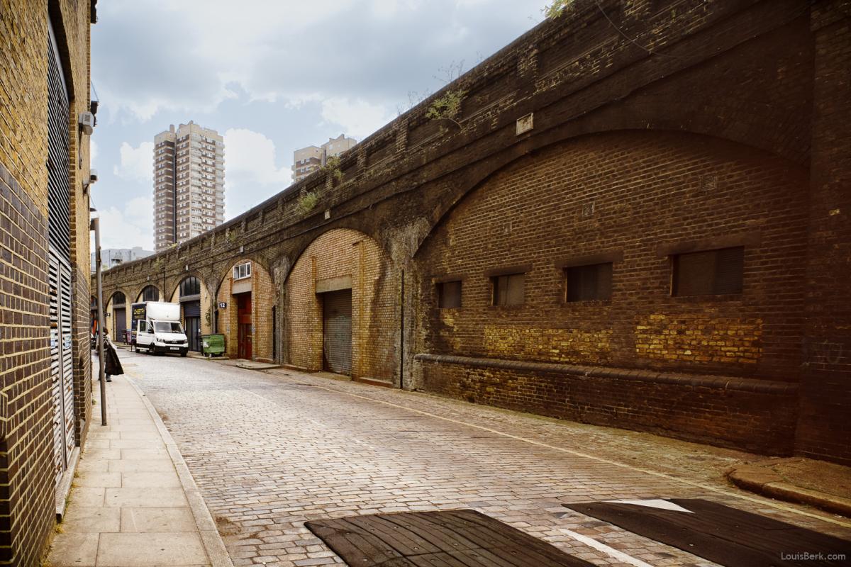 My photographic journey begins in the curved, cobbled, railway-arched, Pinchin Street. The railway viaduct once carried freight traffic to a depot close to Commercial Road a few hundred metres north of this point. The yard was in the general area of Goodman's Fields. which is now a fancy new housing development.